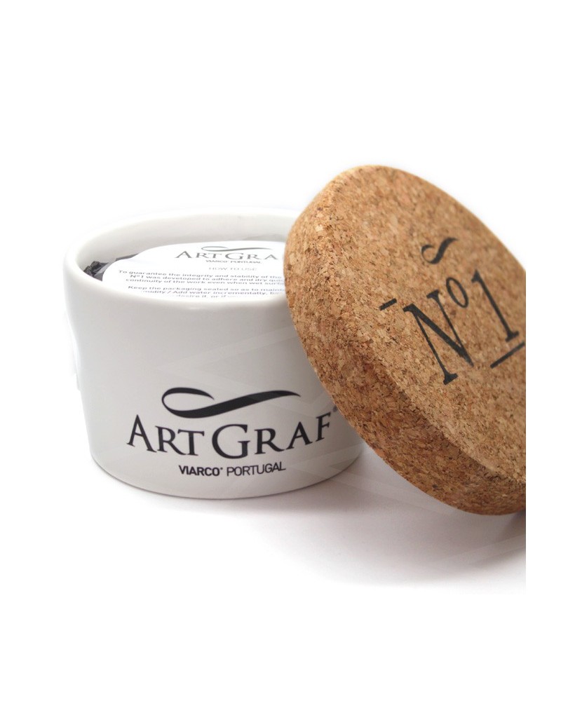 La boule de graphite Artgraf Nº1 est douce et maléable. Vous pouvez creer vos propres formes d'outils a partir de cette pate. Si vous l'utilisez directement comme une balle vous allez pouvoir vous exprimer sur de grandes surfaces. Et si vous en utilisez une partie vous pourrez avoir un meilleur controle. A l'appliquant plus ou moins fortement de nombreux effets sont possibles ainsi qu'en ajoutant de l'eau ou en travaillant en technique sèche. Un superbe cadeau pour vos amis artistes présenté dans un pot en faience.