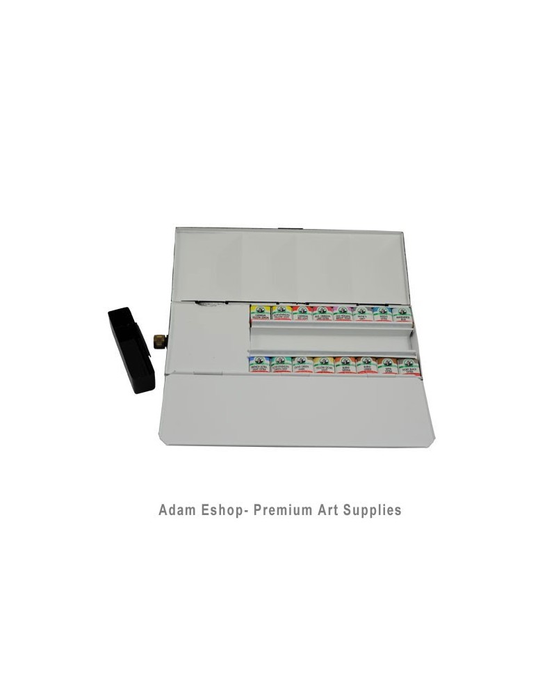 Boite métal anglaise avec réservoir de 16 demi-godets aquarelle extra-fine Old Holland :