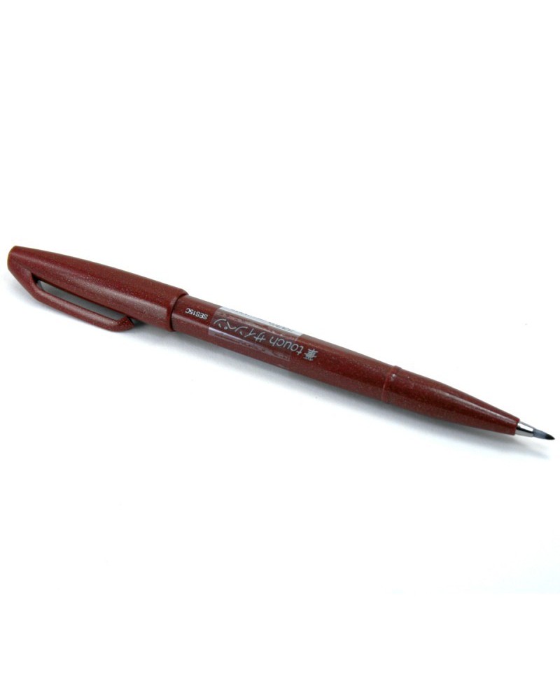 Feutre Pinceau brush Pentel Touch Ocre : Le Feutre Pentel Touch Brush à ne pas confondre avec le feutre Touch de ShinHan est la version brush du célebre Pentel Sign Pen (Le premier feutre au monde inventé par Pentel). Equipé d'une pointe pinceau souple et resistante avec une bague métal ce feutre est idéal pour le dessin, la calligraphie l'écriture, les mangas, l'illustration et la mise en couleur. 12 couleurs disponibles. Fabriqué à 81% à partir de matériaux recycles.