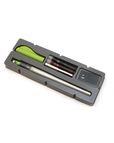 Le fabriquant Japonais Pilot innove une fois de plus pour la calligraphie et le dessin en présentant le stylo plume Pilot Parallel Pen. Sa pointe est constitué pour la première fois de deux fine plaque en métal qui permettent une précision dans les plats et les déliés qui n'a jamais été égalé a ce jour. L'encre fluide s'écoule parfaitement entre ces deux plaques fines et ce de manière continu. De plus vous pouvez créer vos propres couleurs grace a un mélangeur fourni dans la boite. Il est fourni avec deux cartouches (noir, rouge) et une pompe pour le nettoyage.