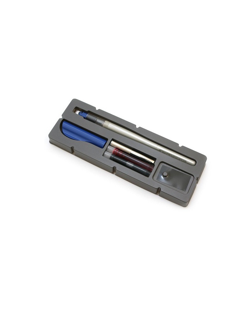 Pilot Parallel Pen pour la calligraphie et le dessin : Le fabriquant Japonais Pilot innove une fois de plus pour la calligraphie et le dessin en présentant le stylo plume Pilot Parallel Pen. Sa pointe est constitué pour la première fois de deux fine plaque en métal qui permettent une précision dans les plats et les déliés qui n'a jamais été égalé a ce jou. L'encre fluide s'écoule parfaitement entre ces deux plaques fines et ce de manière continu. De plus vous pouvez créer vos propres couleurs grace a un mélangeur fourni dans la boite. Il est fourni avec deux cartouches (noir, rouge) et une pompe pour le nettoyage.