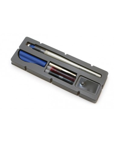 Le fabriquant Japonais Pilot innove une fois de plus pour la calligraphie et le dessin en présentant le stylo plume Pilot Parallel Pen. Sa pointe est constitué pour la première fois de deux fine plaque en métal qui permettent une précision dans les plats et les déliés qui n'a jamais été égalé a ce jour. L'encre fluide s'écoule parfaitement entre ces deux plaques fines et ce de manière continu. De plus vous pouvez créer vos propres couleurs grace a un mélangeur fourni dans la boite. Il est fourni avec deux cartouches (noir, rouge) et une pompe pour le nettoyage.