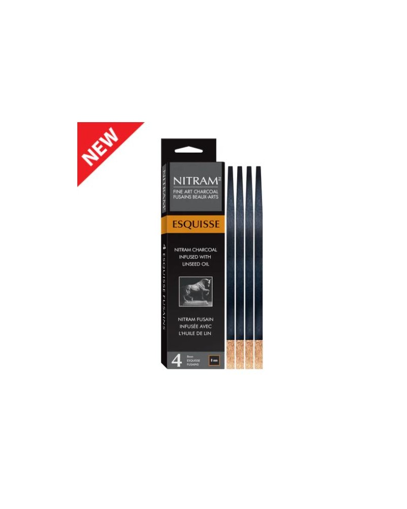 Une nouveauté Nitram à utilser pour vos esquisses sur toile enduite. Adaptée à la peinture à l'huile. Ne disparaît pas avec le temps. Les fusains sont livrés dans un sac hermétique qu 'il est possible de refermer après utilisation pour que l'huile de lin ne sèche pas.