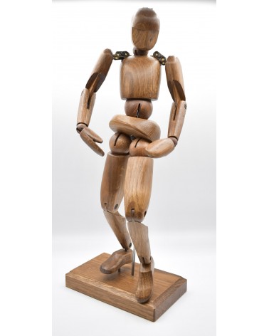 Attention derniers mannequins disponibles ! Ces pièces de collection étaient fabriqué par artisan en France qui à désormais cessé son activité. Ces mannequins sont intégralement articulés. Pouvant prendre des positions plus complexes que les mannequins standard. D'une hauteur de 35cm. Dernier modèle disponible dans une finition en chêne naturel vernis.