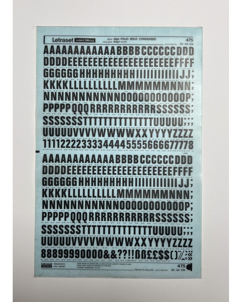 Letraset 475 - FOLIO BOLD CONDENSED - 48/54pt :