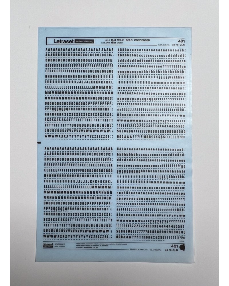 Letraset 481 - FOLIO BOLD CONDENSED - 10/18pt