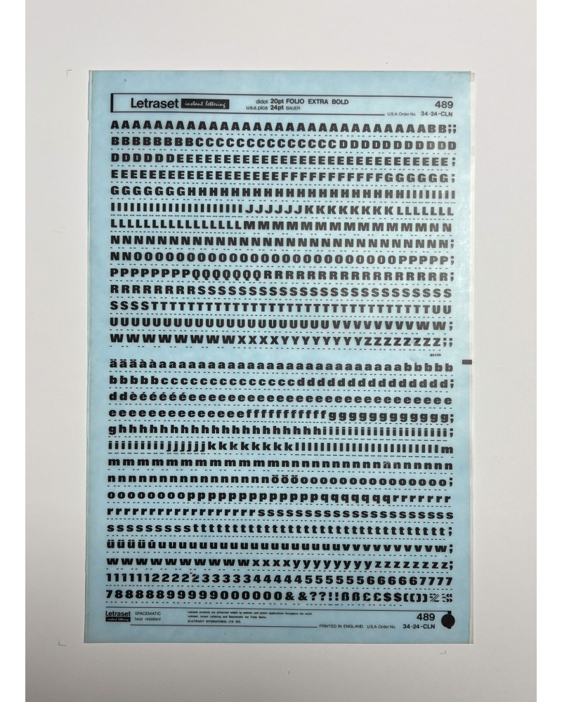 Letraset 489 - FOLIO EXTRA BOLD - 20/24pt