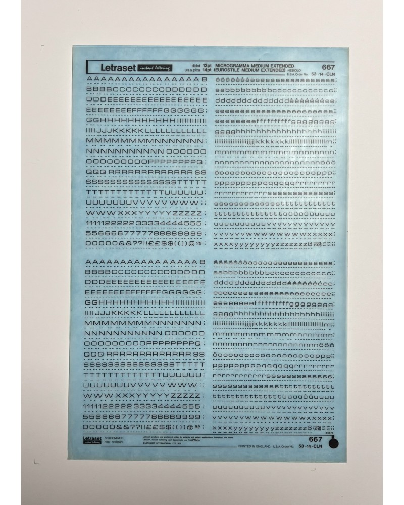 letraset-667- MICROGRAMMA MEDIUM EXTENDED - 12/14pt :