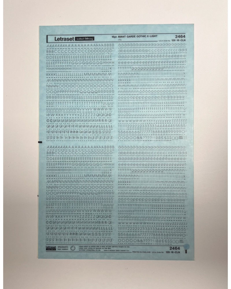 letraset-2464- AVANT GARDE GOTHIC X-LIGHT - 16pt :