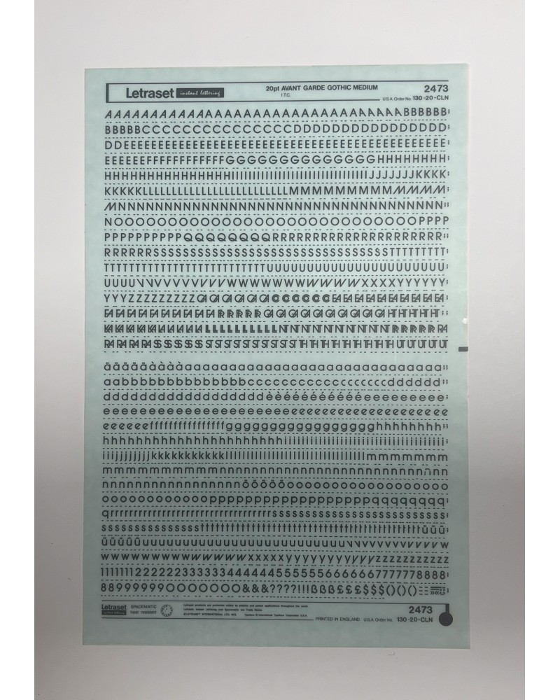 letraset-2473- AVANT GARDE GOTHIC MEDIUM - 20pt