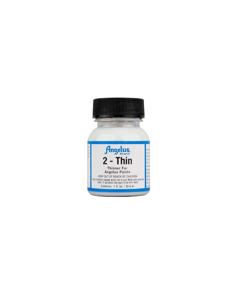 Angelus 2-Thin est utilisé pour diluer la peinture pour le cuir angelus. Le diluant 2-thin pemet d'utiliser la peinture Angelus pour le cuir avec un aérographe. Egalement pratique lorsque l'on peint sur une surface tissée, la peinture peut ainsi mieux pénétrer au coeur des fibres. Fonctionne avec toute la gamme de peinture Angelus, même les Glitters.