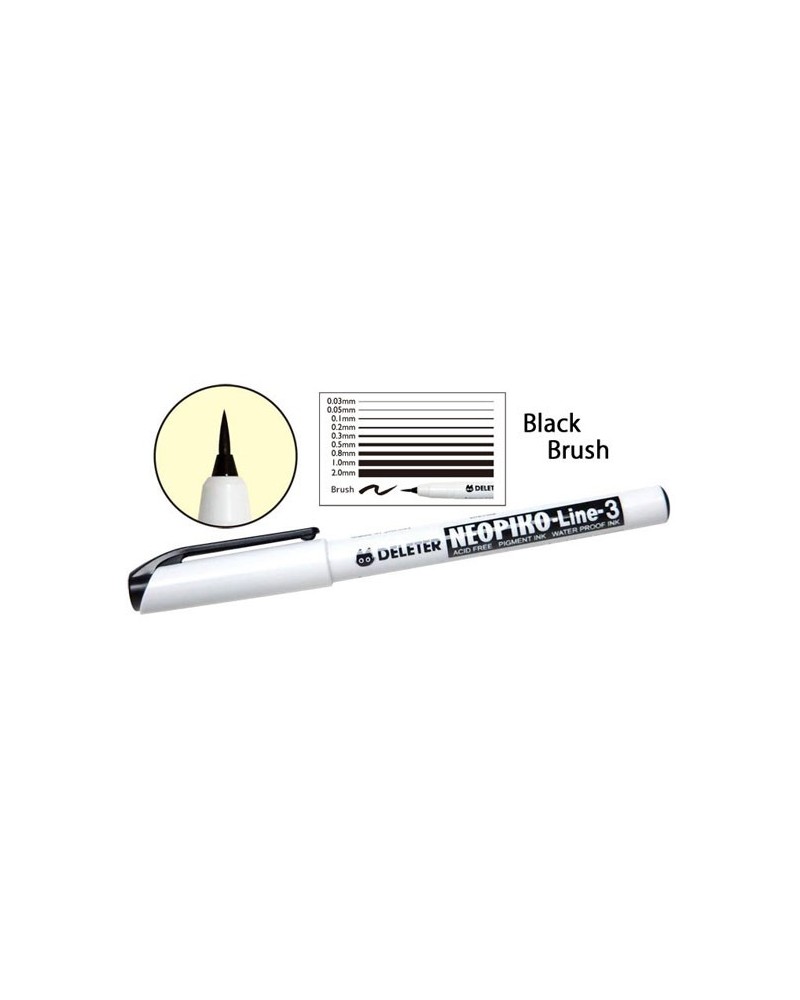 Le Neopiko-Line-3 brush est un feutre pinceau noir mis au point par la marque Japonaise Deleter reconnu dans l'univers "Manga". Ce brush offre la possibilité de réaliser de beaux applats noirs mais également des lignes très précises du fait de sa pointe brush très souple et très fine. Avec une qualité "archive" et une encre permanente à séchage rapide. Ce feutre pinceau est donc compatibke avec les marqueurs à alcool type Touch ou Promarker ou l'aquarelle.