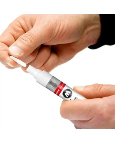 Marqueur vide Molotow pointe 2mm 111EM : Marqueur Molotow 2mm 111EM vide et mines de rechange compatibles. Le marqueur vide 111EM est composé d'une tête, pompe, corps long et d'un capuchon. Marqueur vide avec une pointe ogive 2 mm d'une contenance spécialement adaptée aux encres et acryliques extra-fluides. Pour l'utiliser avec Angelus ne pas oublier d'ajouter quelques gouttes du 2-thin à votre couleur avant de le remplir (La peinture doit être fluidifiée).