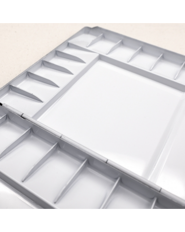 Les palettes Heung Il sont parfaites pour tous les aquarellistes amateurs et professionnels. Ces palettes sont fabriqués à partir d'un alluminium de haute qualité puis laqué en noir à l'extérieur, blanc à l'intérieur. Cette finition lisse est obtenue grâce un traitement en haute température, le revétement est ainsi comme un vernis. Très peu d'infiltration et pas de traces de peinture une fois la palette nettoyée.