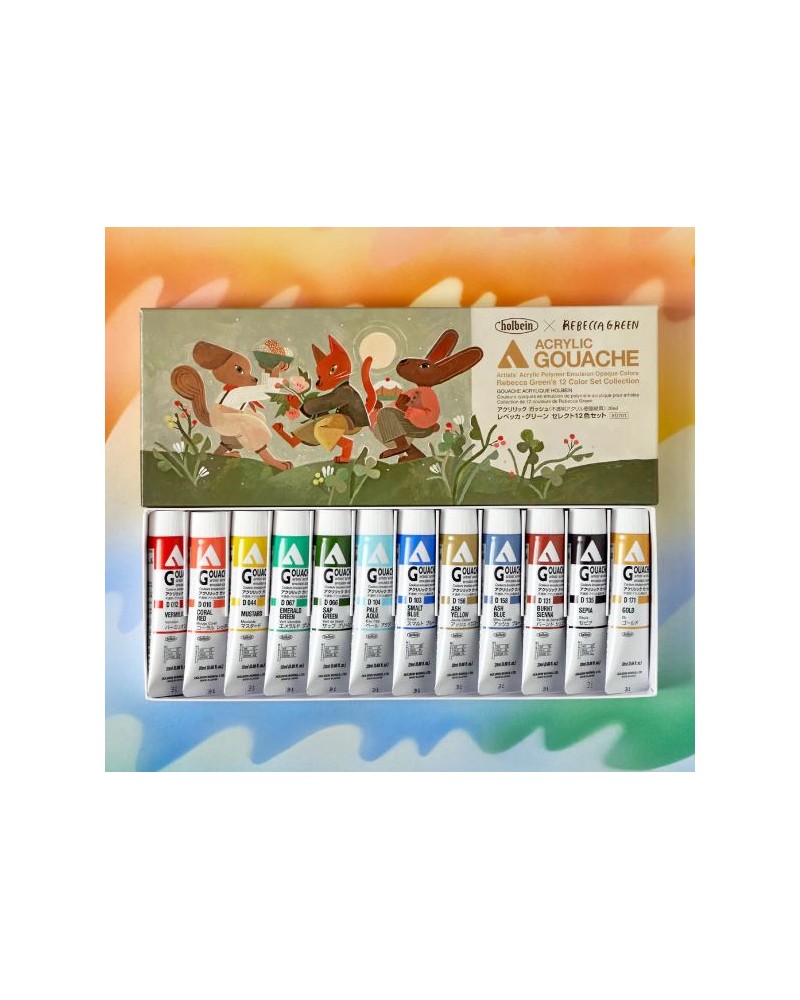 Set de 12 couleurs Acryla-Gouache 20ml Holbein (Rebecca Green) :
