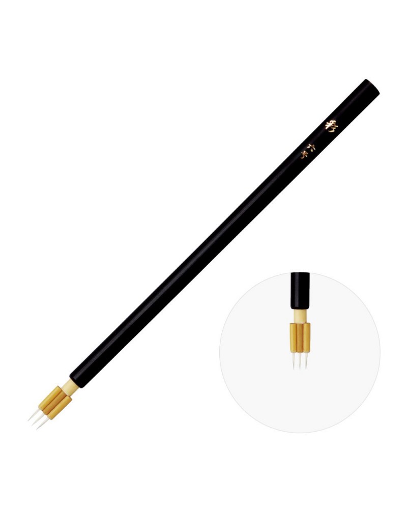 Triple pinceau incroyable pour faire des lignes parfaitement symetriques. Pinceau ultra fin fait main au Japon qui utilise au mieux le savoir-faire traditionnel des pinceaux japonais. Poil de chat. Un set de 6 boites en bois de paulownia est également disponible.