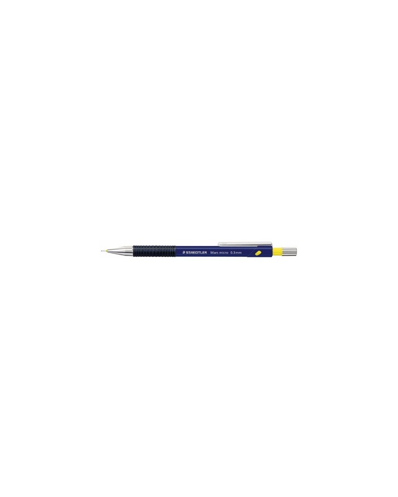 Porte-mine de dessin et d'écriture avec manchon caoutchouc antiglisse, pointe, clip et poussoir métal. Le canon est droit pour les tracés à la règle et rentrant pour la protection des poches. Le Staedtler Mars Micro est doté d'un amortisseur de mine et d'un système de recharge directe de 12 mines. Disponible en 4 diamètre de mines (0.3, 0.5, 0.7 et 0.9mm)
