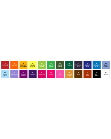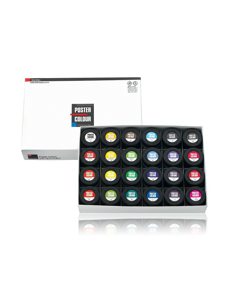 Boite contenant 24 couleurs de poster color extra-fine Shinhan en flacon de 40ml. Conditionée dans des flacons en verre pour plus de stabilité, cette gouache offre des couleurs vives en opaque. Beaucoup de professionnels en Asie et aux Etats Unis les apprecient pour leur excellente capacité a se mélanger entre elles offrant ainsi une infinité de nuances sans alterer l'intensité des couleurs.
