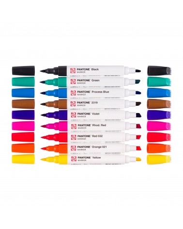 Ce set contient 9 marqueurs Pantone et inclut un coffret robuste au design épuré horizontal, de sorte que l'écoulement de l'encre soit toujours optimal, quelle que soit la pointe utilisée. Le nom et le numéro de couleur sur le capuchon de chaque marqueur vous permettent de choisir facilement la bonne couleurs pour votre travail.