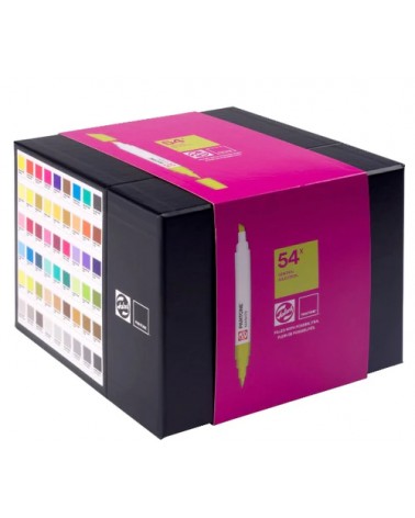Ce set contient 54 marqueurs : Yellow - Orange 021 - Red 032 - Rhod. Red - Violet - 2319 - Process Blue - Green - Black - 100 - 102 - 104 - 114 - 116 - 118 - 1485 - 1505 - 1535 - 197 - 200 - 201 - 218 - 221 - Rubine Red - 2645 - 2665 - 2685 - 2985 - 3005 - 3025 - 3255 - 3275 - 3295 - 366 - 368 - 370 - 380 - 382 - 384 - 467 - 465 - 463 - 7556 - 7558 - 7560 - Warm Gray 2 - Warm Gray 6 - Warn Gray 10 - Cool Gray 1 - Cool Gray 3 - Cool Gray 5 - Cool Gray 7 - Cool Gray 9 - Cool Gray 11