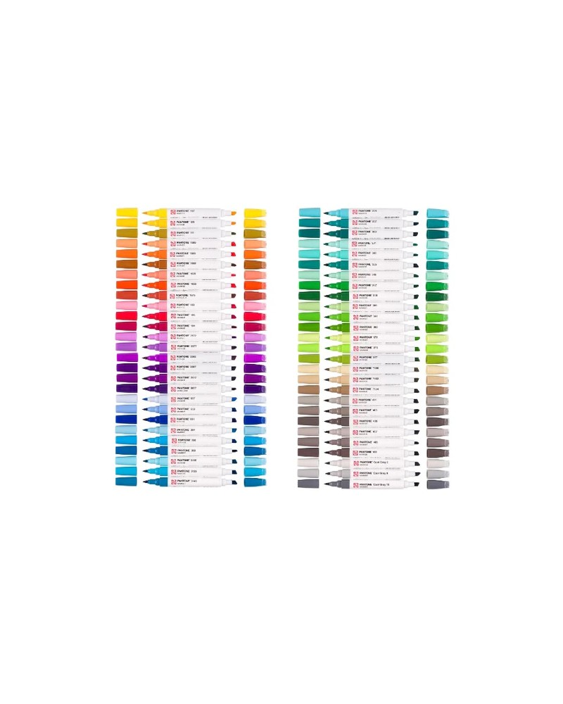 Ce set contient 54 marqueurs Pantone et inclut un coffret robuste au design épuré horizontal, de sorte que l'écoulement de l'encre soit toujours optimal, quelle que soit la pointe utilisée. Le nom et le numéro de couleur sur le capuchon de chaque marqueur vous permettent de choisir facilement la bonne couleurs pour votre travail.